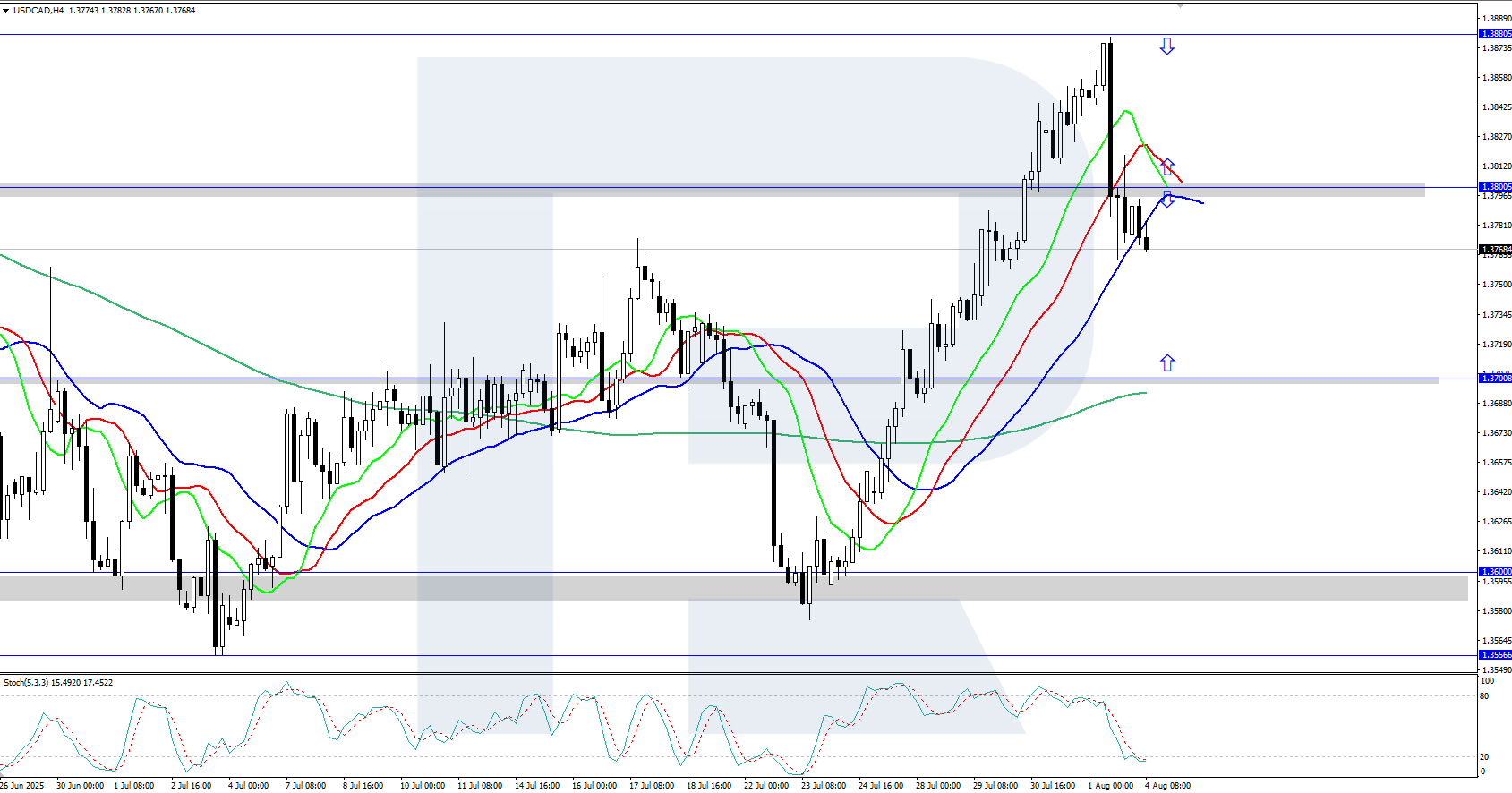 The USDCAD rate reversed downwards and consolidated below 1.3800 following the release of weak US Nonfarm Payrolls data on Friday. Discover more in our analysis for 4 August 2025.