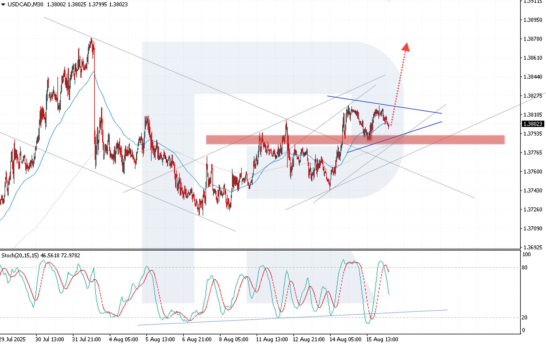The USDCAD rate corrects amid positive economic data from Canada, currently standing at 1.3802. Find out more in our analysis for 18 August 2025.