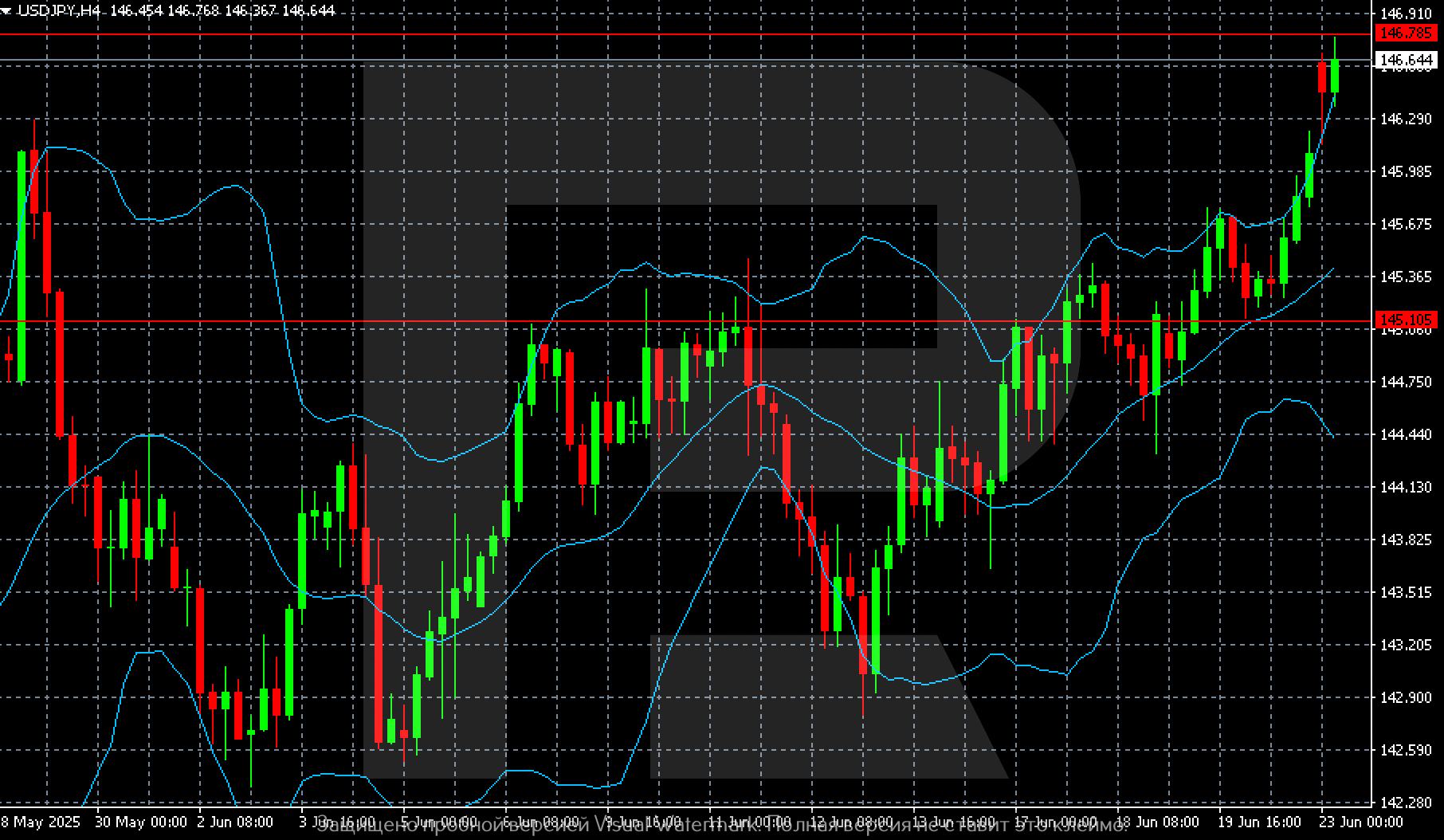The USDJPY pair continues to trade higher with no signs of retreat. The USDJPY forecast for today, 23 June 2025, suggests a new wave of buying with a retest of the local high at 146.78.