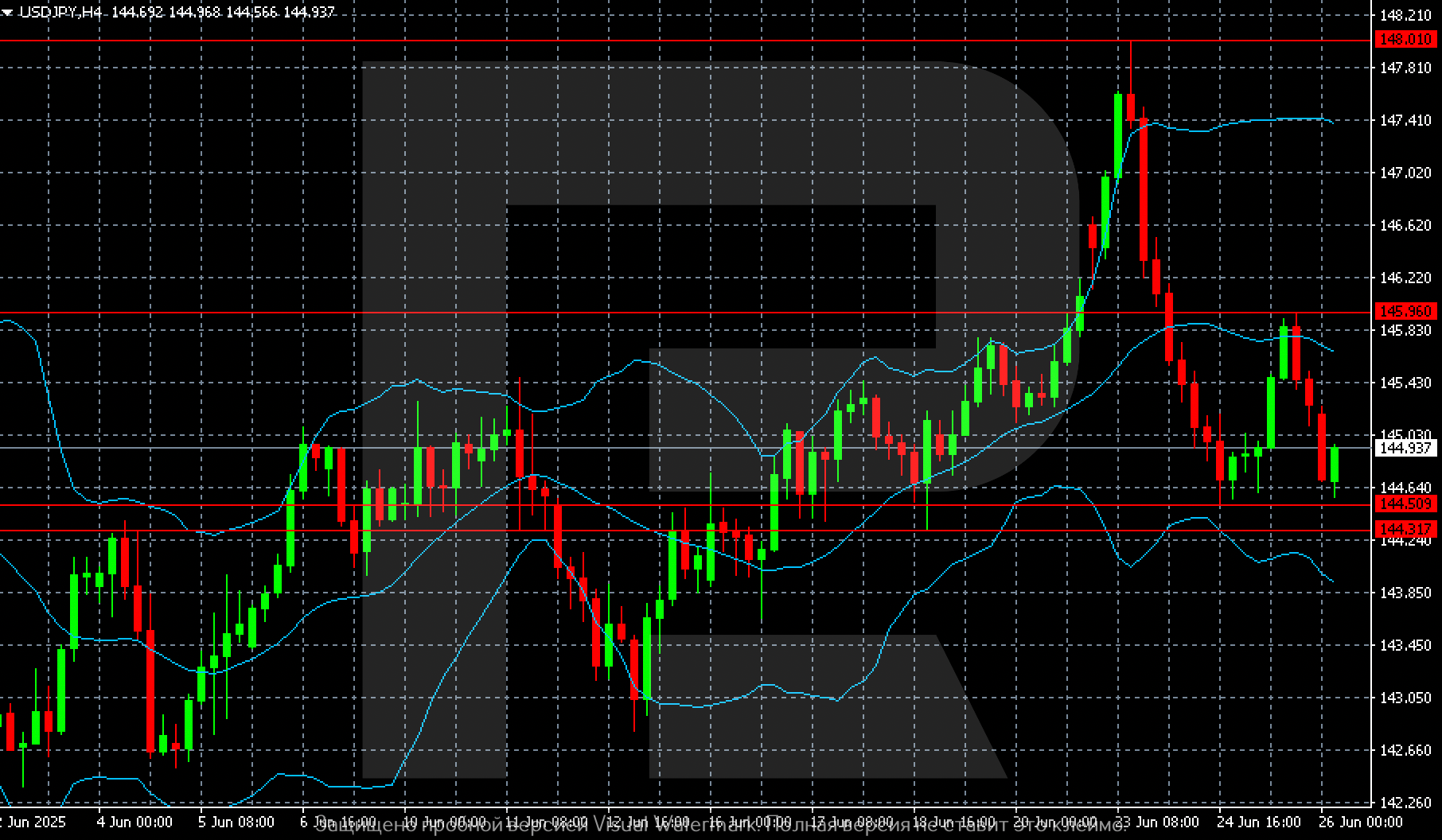 The USDJPY pair continues to decline, supported by both fundamental and technical factors. The USDJPY forecast for today, 26 June 2025, anticipates further downside pressure, with the first key target at 144.50.