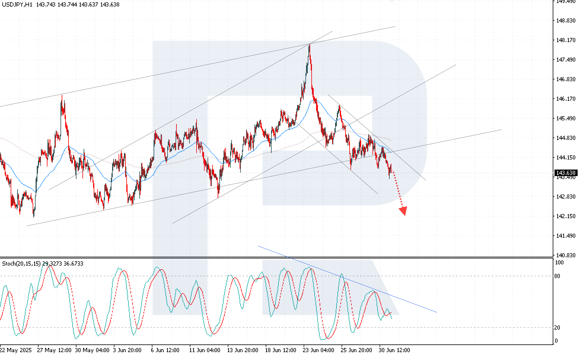 USDJPY rate is falling, bears have settled below key support. Current quote – 143.69. Details – in our analysis for 1 July 2025.