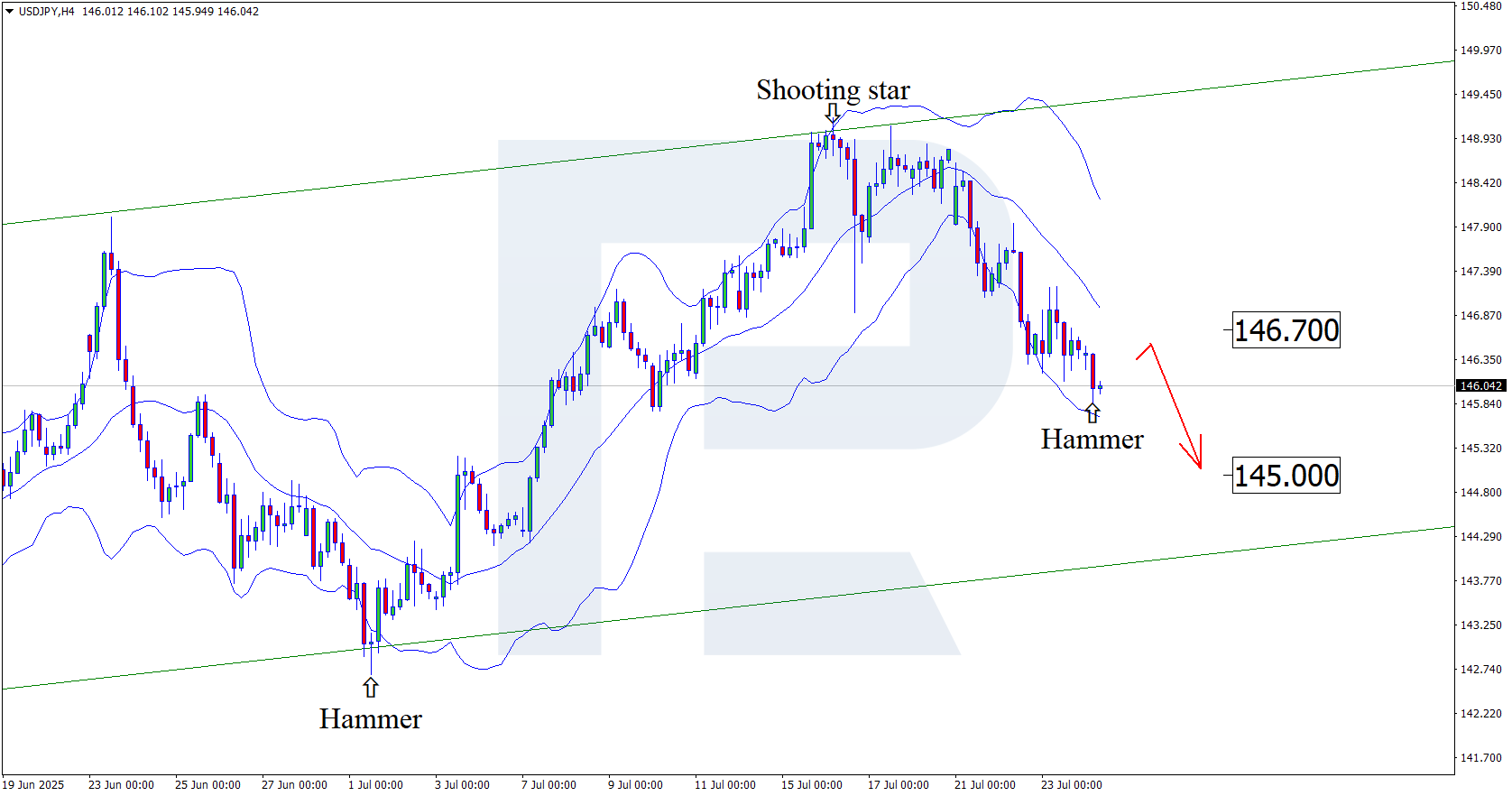 The reduction of tariffs for Japan to 15% strengthens the yen. Against this backdrop, the USDJPY rate may decline towards 145.00. Find out more in our analysis for 24 July 2025.