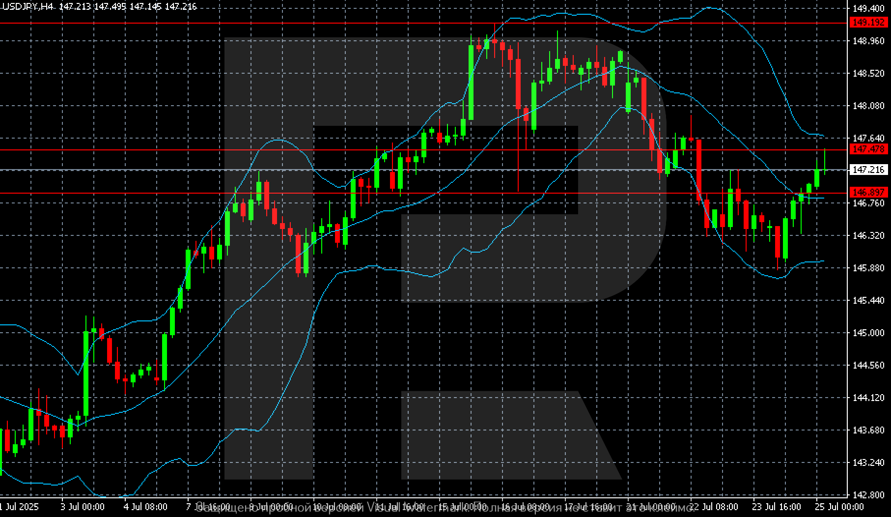 The USDJPY pair has advanced and retains upside potential. The USDJPY forecast for today, 25 July 2025, includes the possibility of an extended upward wave towards 147.50 and further to 149.20.