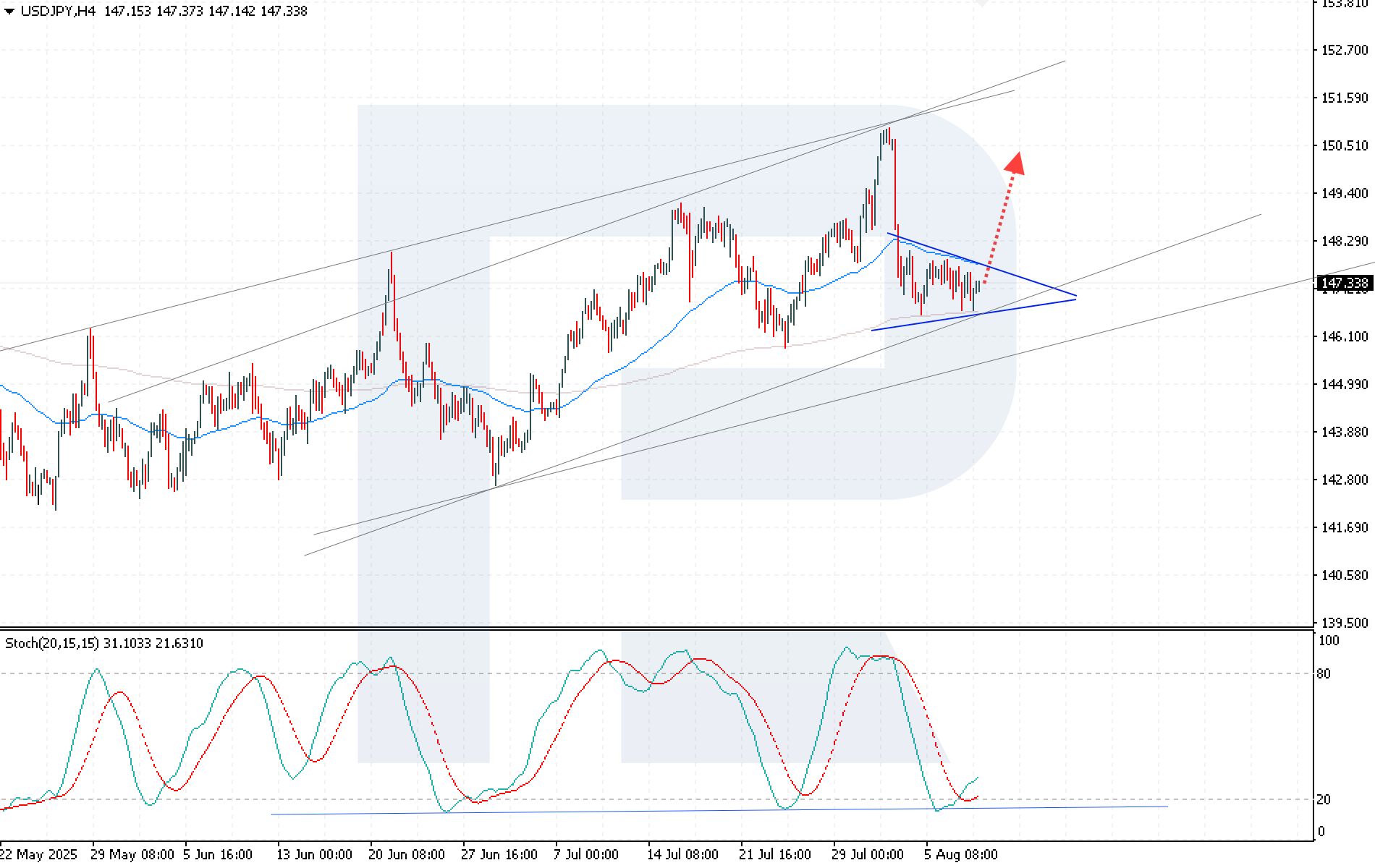 The USDJPY rate remains in a narrow range amid disagreements within the BoJ over the timing of future rate hikes. The current quote is 147.33. Find out more in our analysis for 8 August 2025.