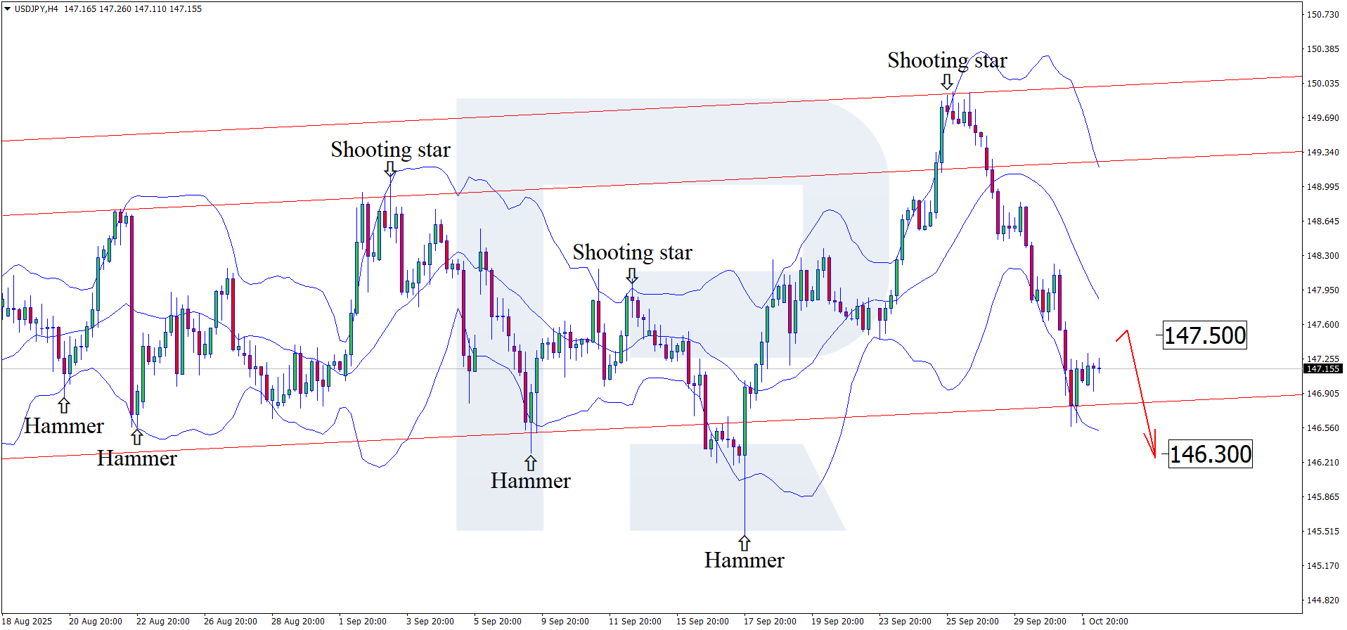 The forecast for 26 September 2025 takes into account that the USDJPY pair continues its downward momentum for the fourth consecutive session and is trading around 147.20.