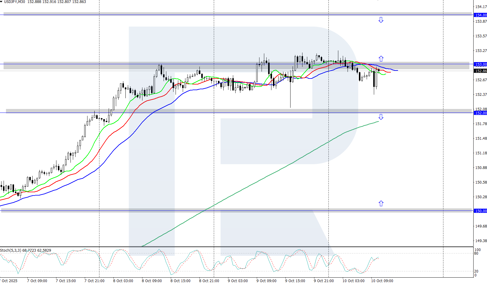 The USDJPY rate is on the rise, climbing to around 153.00 following the recent elections in Japan. Discover more in our analysis for 10 October 2025.