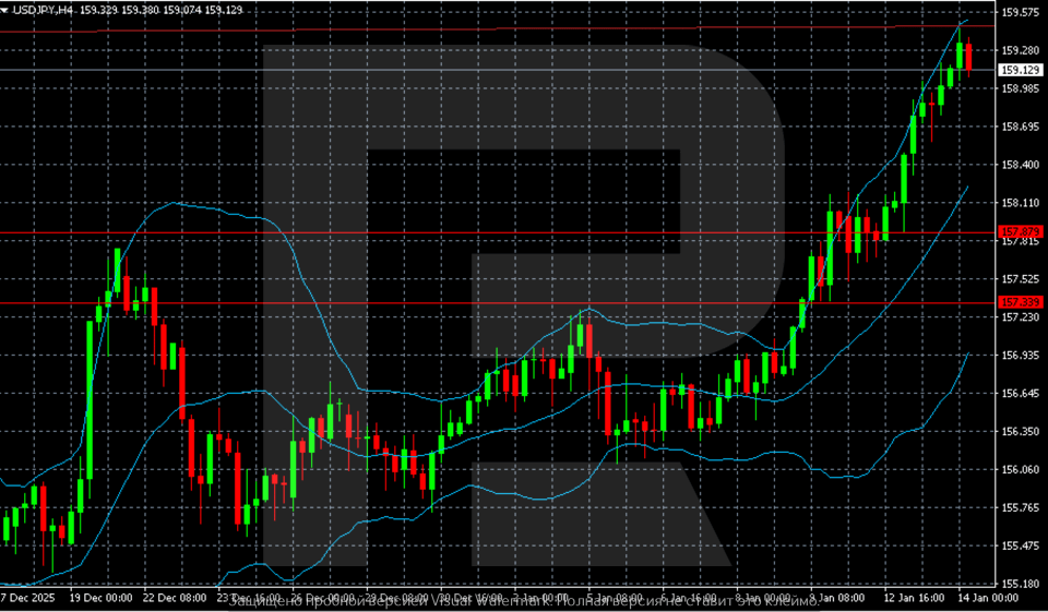 The USDJPY pair continues its surge, while correction risks are also increasing. The USDJPY forecast for today, 14 January 2026, does not rule out a move towards 160.00.
