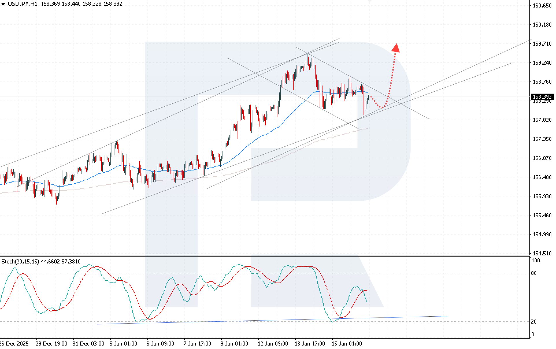 The USDJPY rate is undergoing a downward correction amid increased caution ahead of the Bank of Japan meeting and intensified verbal interventions from Japanese authorities, with the price currently at 158.39. Discover more in our analysis for 16 January 2026.