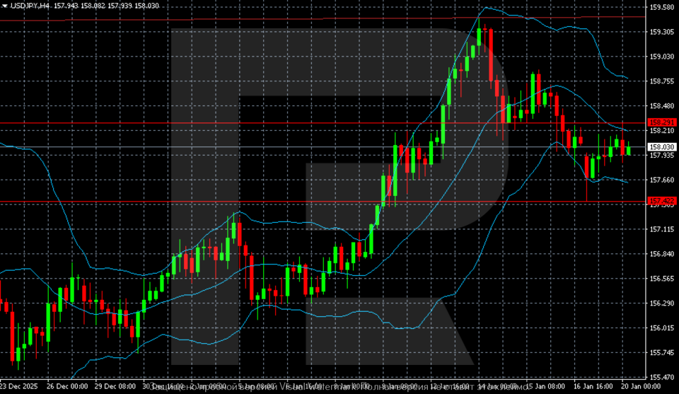 The USDJPY pair stabilised near 158.30, with political news and signals from the Bank of Japan currently the most important factors. Find more details in our analysis for 20 January 2026.