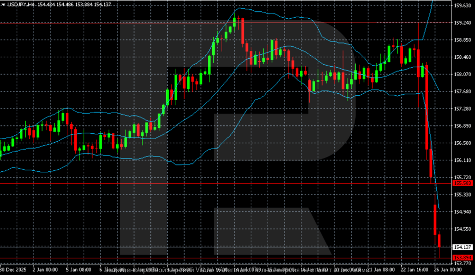 The USDJPY pair is falling rapidly in response to political rhetoric and market expectations. The USDJPY forecast for today, 26 January 2026, does not rule out a return towards 153.70.