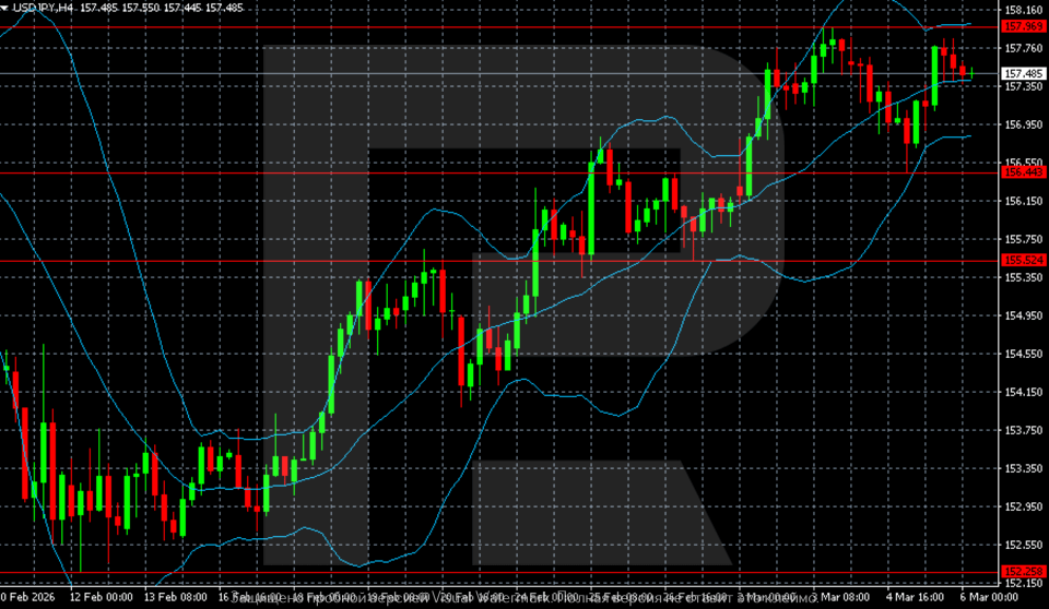 The USDJPY pair is hovering near 157.48, with the yen under pressure from the strong US dollar. Find out more in our analysis for 6 March 2026.