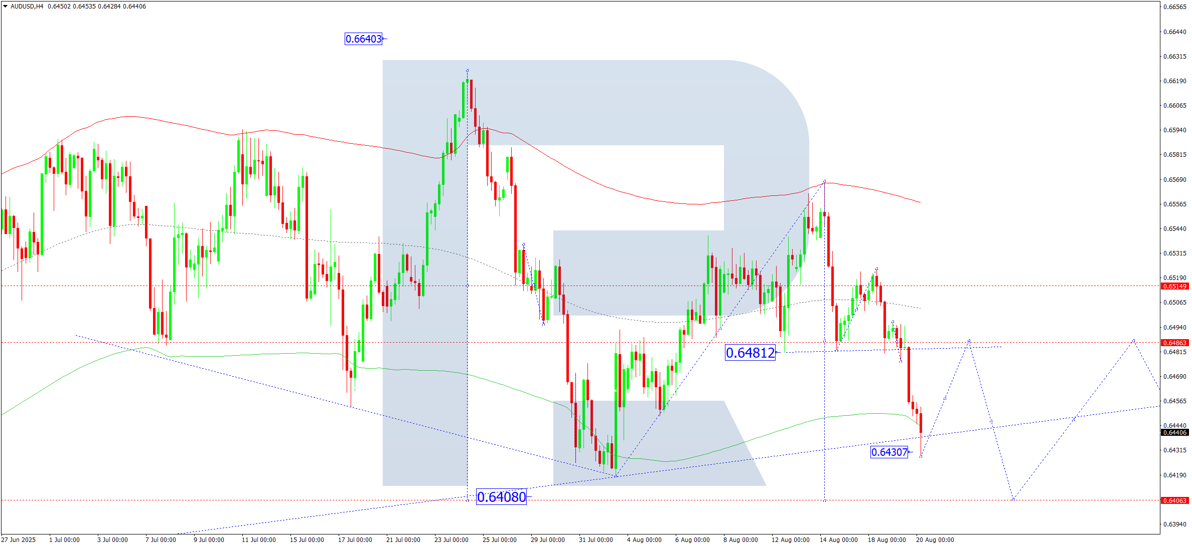 On the H4 chart of AUDUSD, the market reached the local target of the downward wave at 0.6430. Today, 20 August 2025, a correction to 0.6480 (testing from below) is possible. Afterwards, the trend may continue to 0.6408, the first target.
