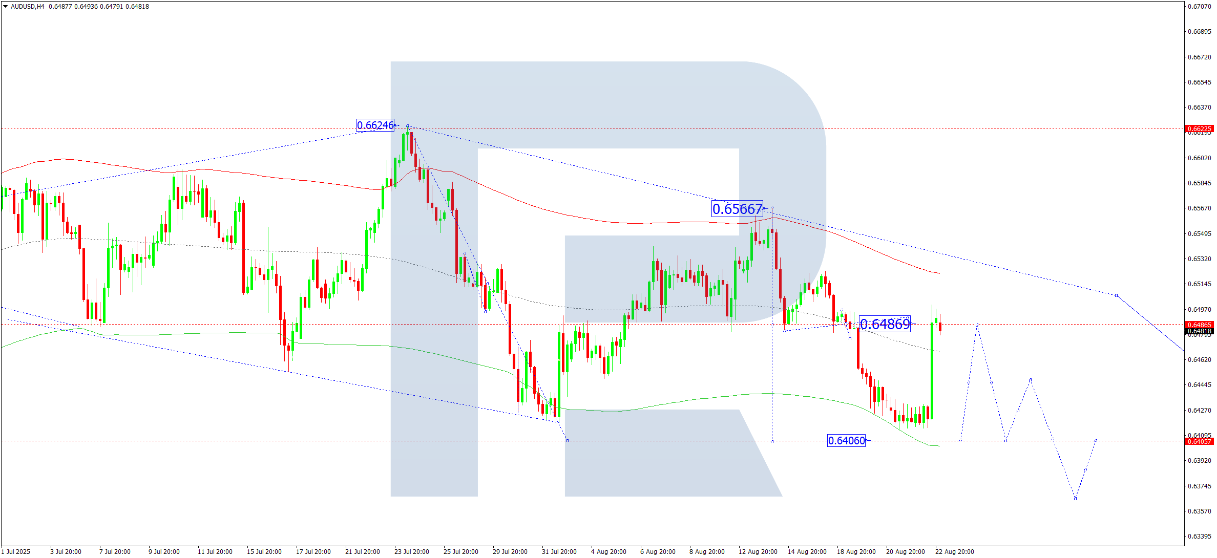 On the H4 chart of AUDUSD, the market corrected towards 0.6499. Today, 25 August 2025, the downward wave is expected to continue to 0.6400. After reaching this level, a correction to 0.6490 is possible.