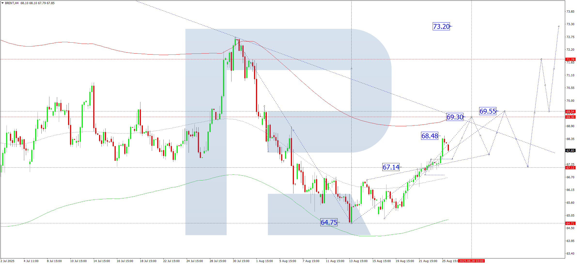 Technical indicators for today’s Brent forecast suggest growth to 69.30.