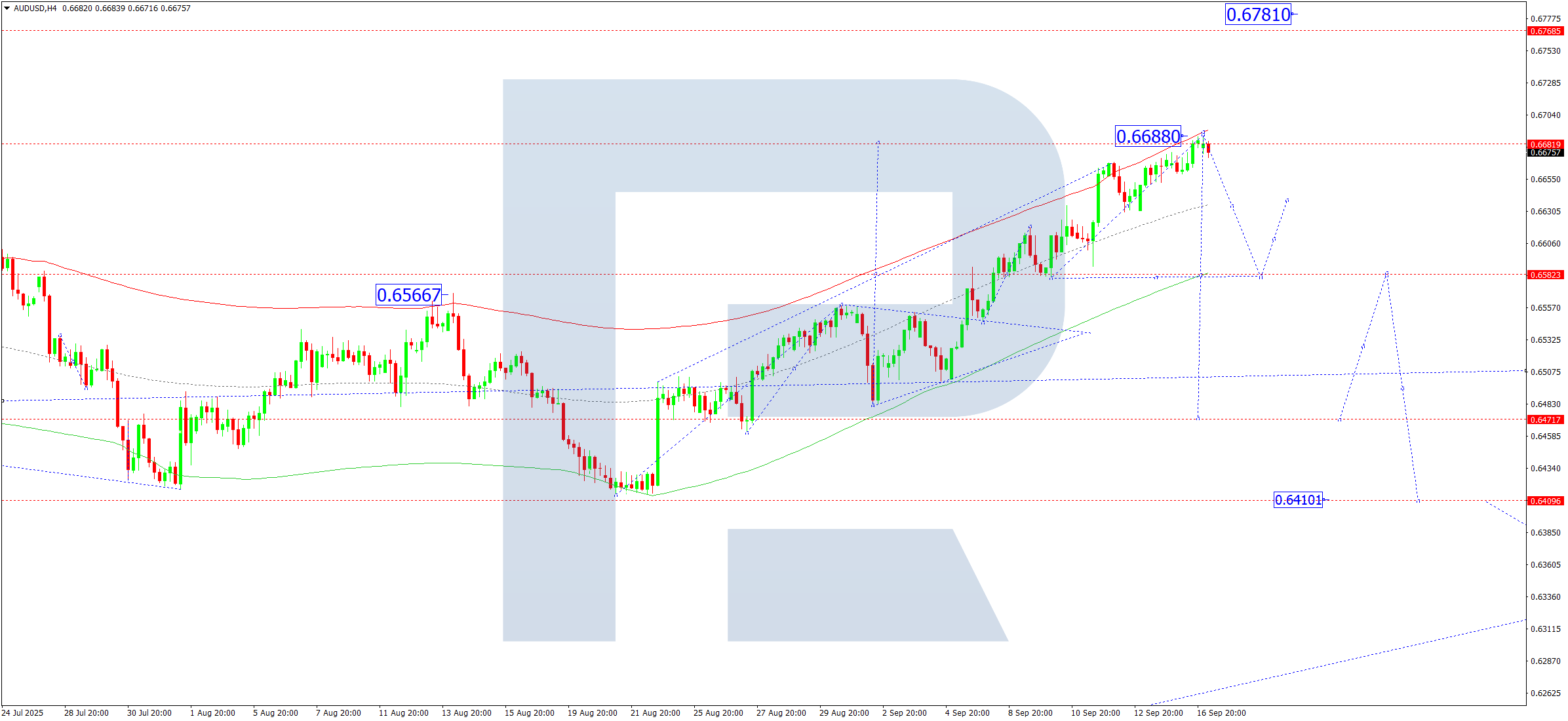 On the H4 chart of AUDUSD, the market completed a growth wave to 0.6688. Today, 17 September 2025, a decline to 0.6580 is expected, followed by growth to 0.6640.