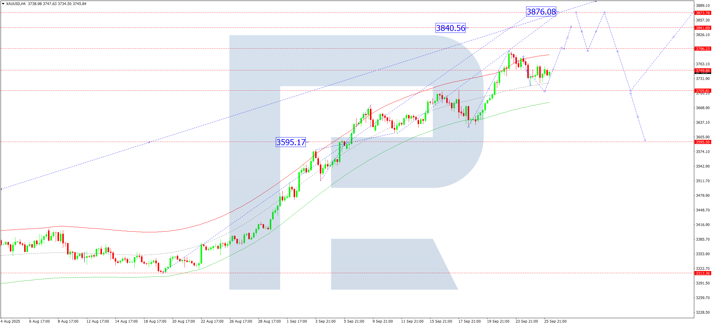 On the H4 chart of XAUUSD, the market continues to consolidate around 3,750. Today, 26 September 2025, the range may extend downwards to 3,707. After this correction, a new upward wave to 3,790 is possible. A breakout above 3,790 may open potential for further trend continuation towards 3,840 as a local target.