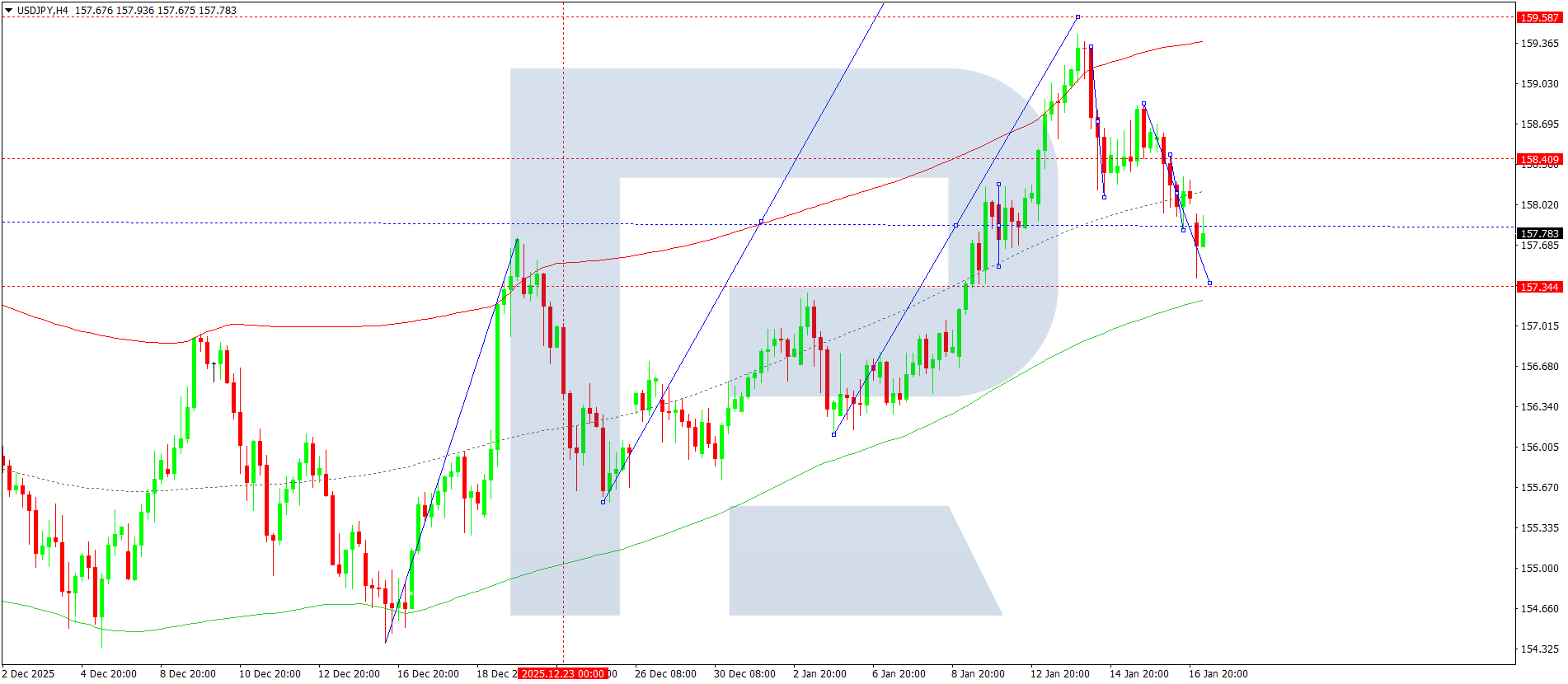 On the USDJPY H4 chart, the market completed a corrective wave to the 157.42 level. Today, 19 January 2026, a correction towards the 158.10 level is expected. Further, another downward move towards the 156.81 level remains possible. After that, growth towards 158.00 is expected, with the trend potentially continuing towards 160.00.