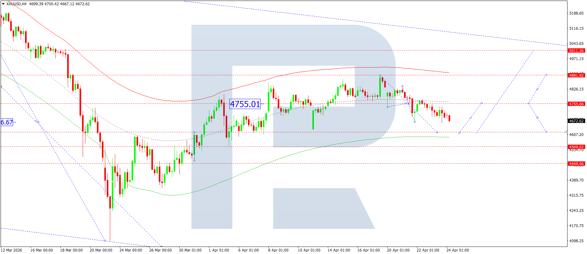 On the H4 chart of XAUUSD, the market is forming a consolidation range around 4,755. Today, 24 April 2026, prices are expected to drop to 4,616 before climbing to 4,755.
