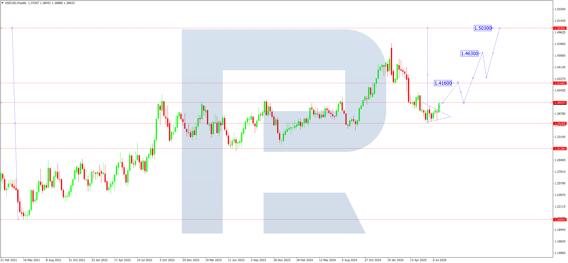 The USDCAD pair remains under pressure following the end of its upward phase in February 2025, when the rate reached a local peak at 1.4790. Since then, the Canadian dollar has shown steady strengthening, supported by both internal and external factors.
