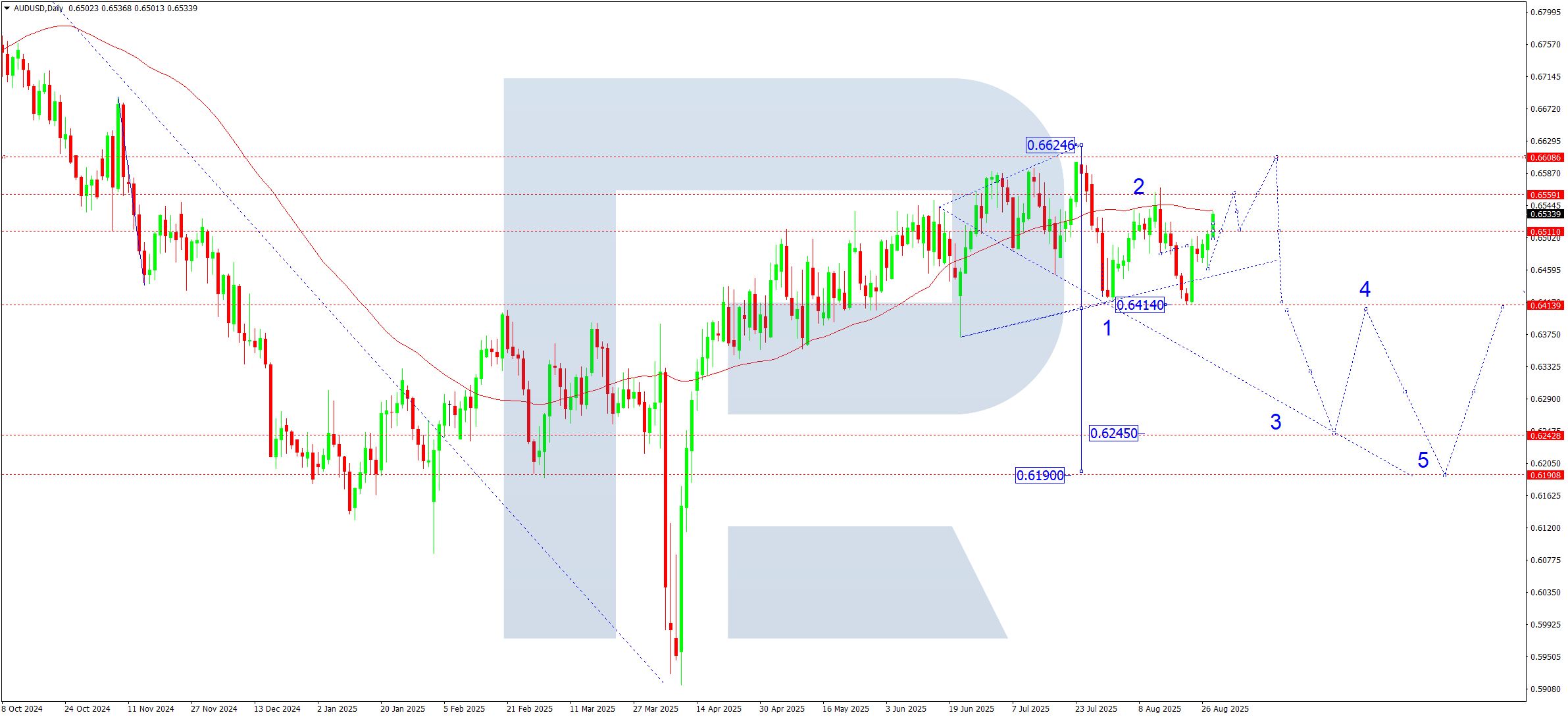 On the daily chart, the AUDUSD pair is consolidating broadly around 0.6500. The market broke above 0.6511, suggesting potential for growth towards the upper boundary of 0.6555-0.6600. Subsequently, a downward move towards 0.6400 remains possible. A breakout lower would open the potential for a trend continuation to 0.6245 as a local target.