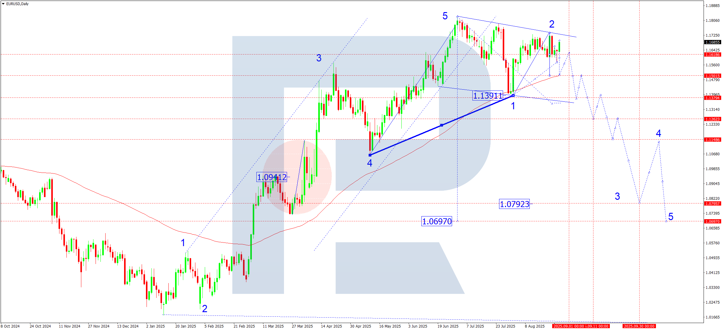 The fifth growth wave reached its calculated targets and stalled in a strong consolidation range at the top of the structure. Historically, the following week often becomes a turning point. Against this background, the baseline scenario is a downward reversal: technical exhaustion and the artificial nature of the previous rally meet the flow of real macroeconomic data from the eurozone.