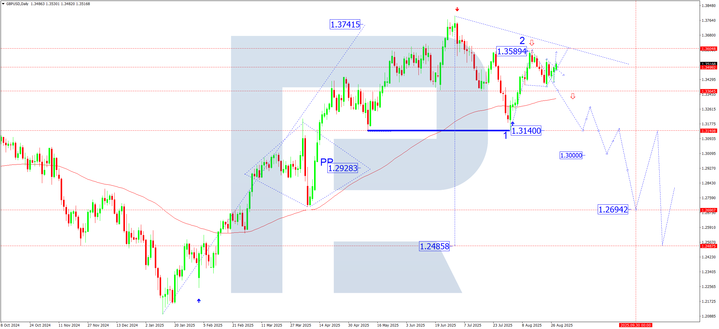 On the daily chart, GBPUSD continues to consolidate around 1.3500. If it breaks upwards, the wave may extend to 1.3600. A downward breakout, however, would target 1.3355, where the SMA50 could provide support and send the pair lower to 1.3477. Further downside would aim for 1.3300, and a breakout lower would open the door for a move towards 1.3140.