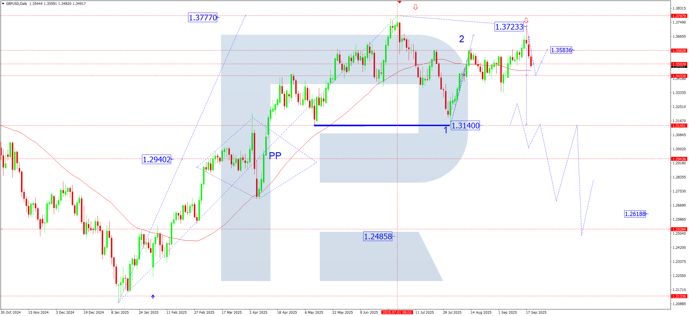 The euro remains tied to expectations for ECB and Fed interest rates. Investors focus on inflation data and Federal Reserve rhetoric, with any signal of a shift towards looser policy potentially limiting the euro’s decline. On the other hand, weak eurozone data increases pressure on the EUR and supports a downward corrective wave.