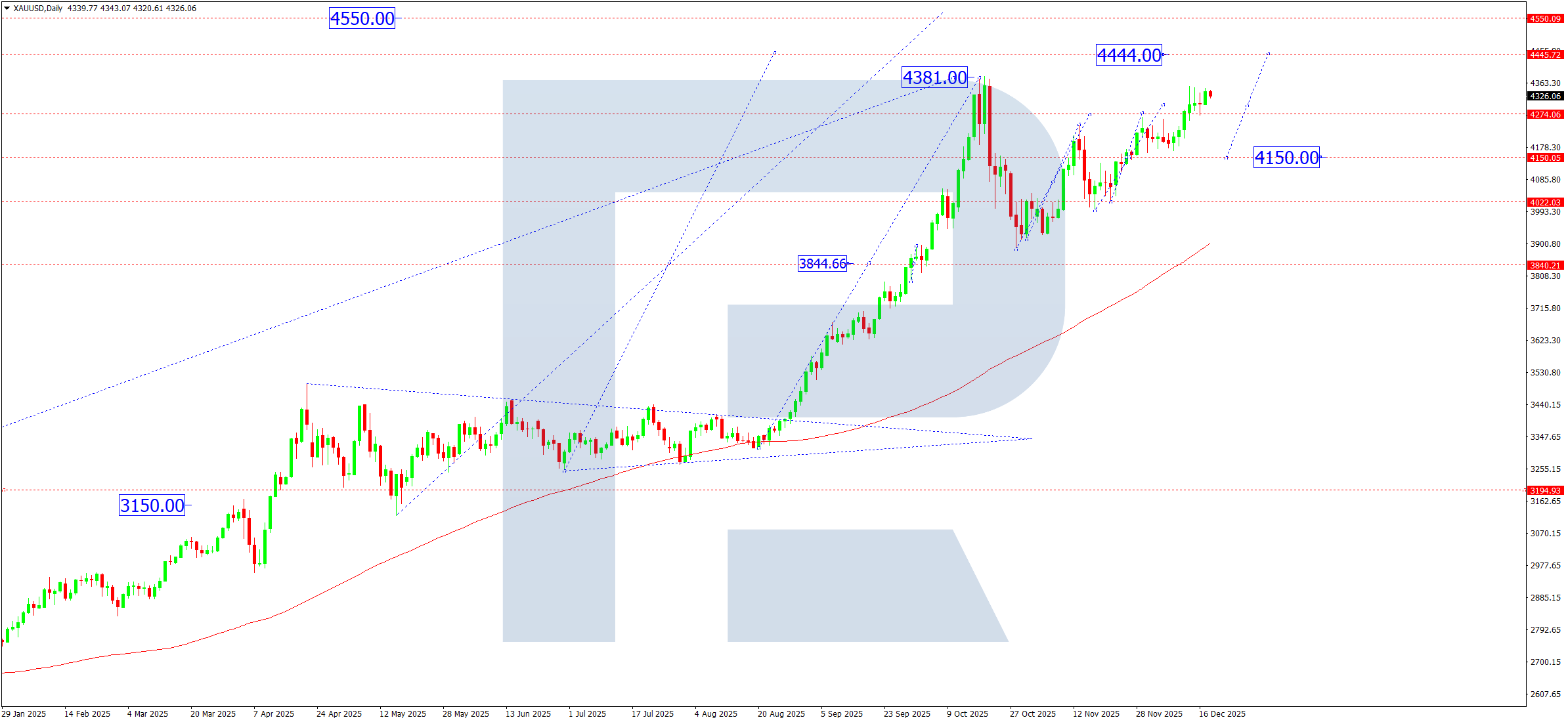 On the daily XAUUSD chart, the market completed the calculated growth wave and reached the key level at 4,300, where it is currently forming a consolidation range.