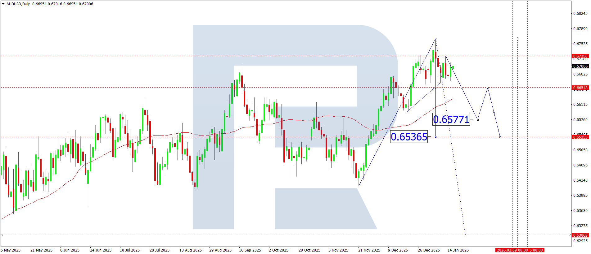 Bearish (main) scenario: the pair is expected to decline to 0.6560, with the trend continuing to 0.6525.