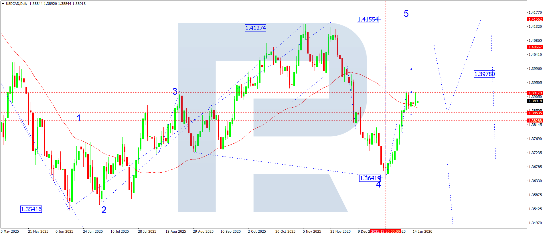 On the daily USDCAD chart, the market continues to form an impulsive growth structure, with the target near 1.4150.