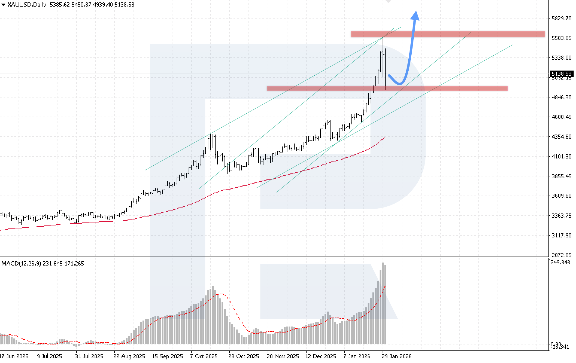 XAUUSD quotes fell by more than 9% on Friday, extending the correction after the previous trading session amid profit-taking. In just the last two days of last week, prices fell by more than 11%. However, near the 4,940 USD level, quotes found support from bulls, so it is still premature to talk about the end of the bullish trend.
