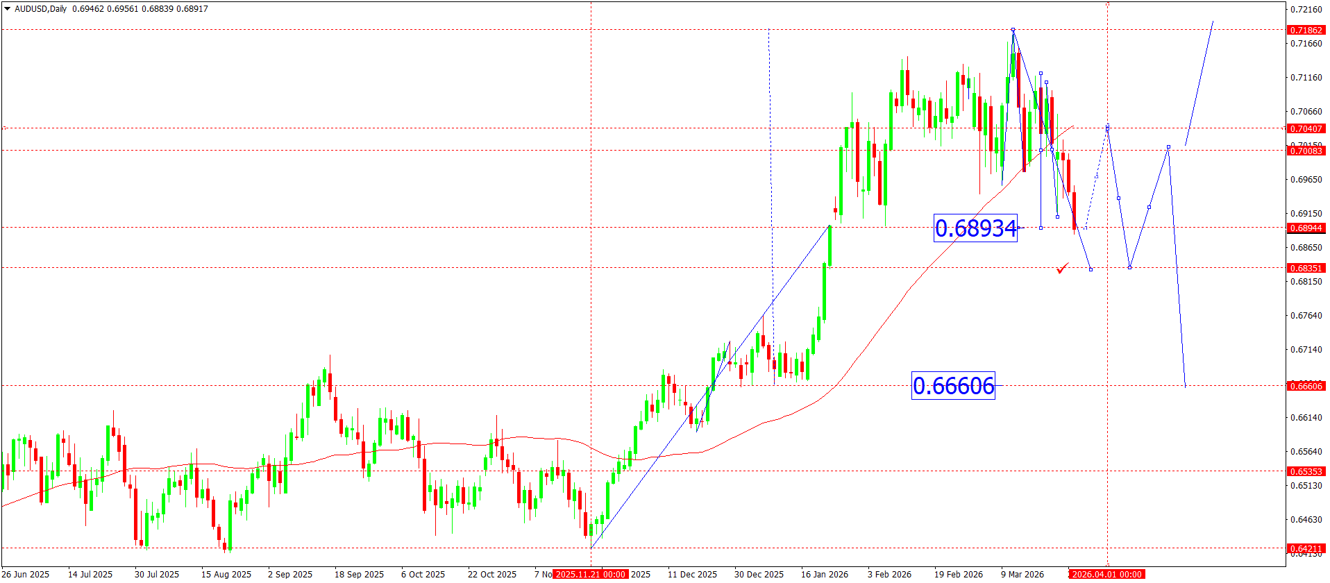 From a technical perspective, the AUDUSD pair retains a medium-term ascending structure, but is currently in a correction phase after forming a local high near 0.7186. After the impulsive rise from the 0.6420 area, the market formed a sequence of higher lows, confirming an uptrend.