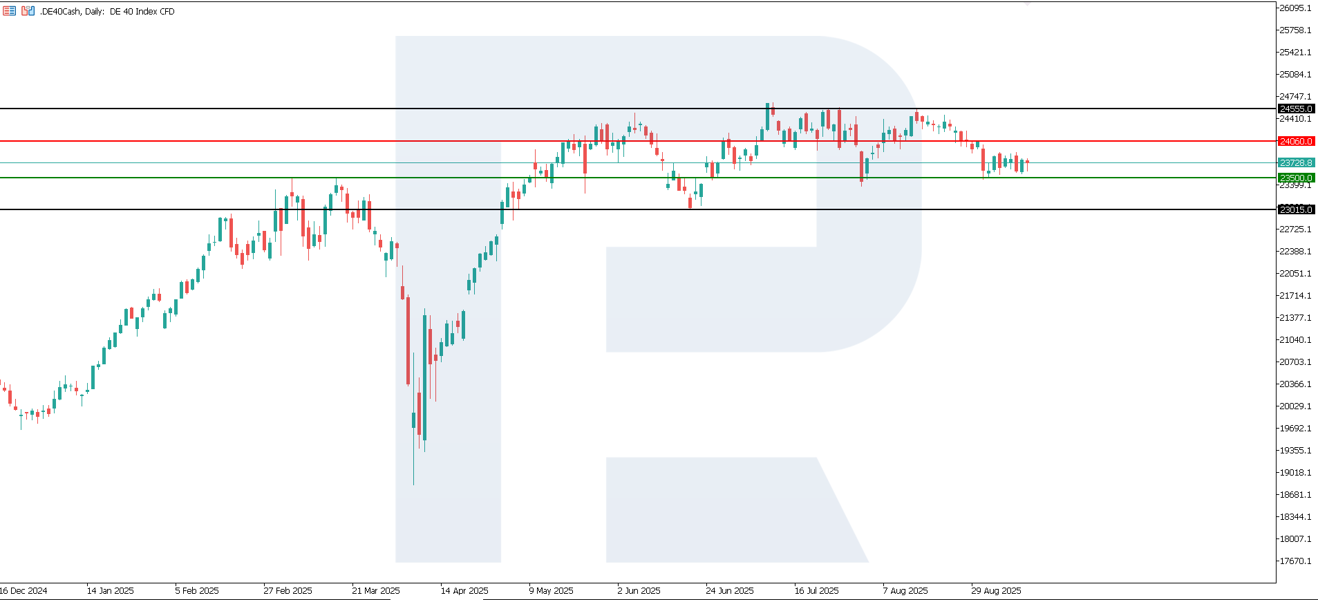 Overall, the impact on the DE 40 can be described as moderately positive: investors see monetary policy as predictable, which contributes to stability and lower market volatility. For technology stocks, the decision also acts as a supportive factor, since predictable monetary conditions ease pressure on high-growth businesses and sustain their investment appeal. The nearest downside target for the index may be 23,360.0.