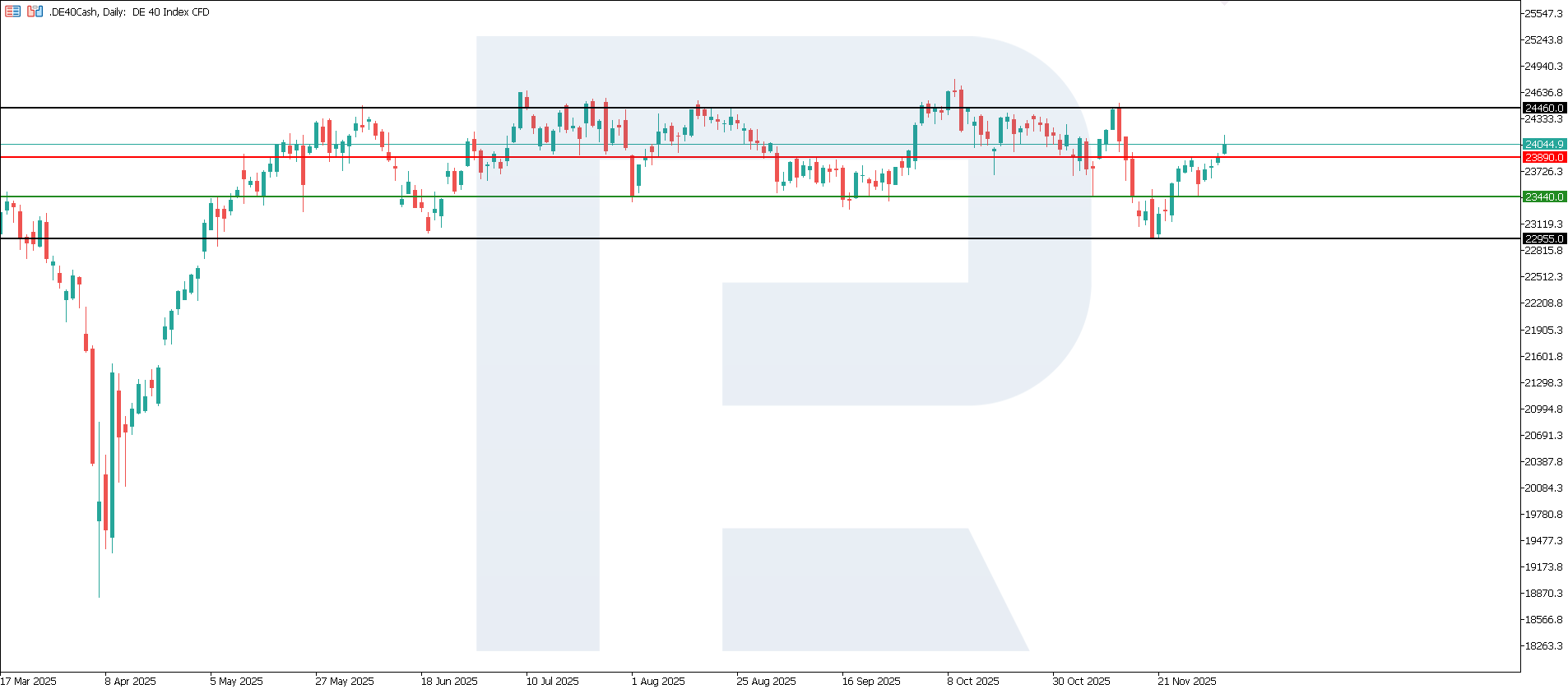 Importantly, this does not signal a powerful new growth cycle, but rather confirms the stability of current conditions. Therefore, the effect on the DE 40 can be described as moderately positive, likely supporting the index and limiting the depth of a potential correction, but not sufficient to guarantee a sustained rally without support from other data and the global backdrop. The nearest upside target for the index may be 24,460.0.