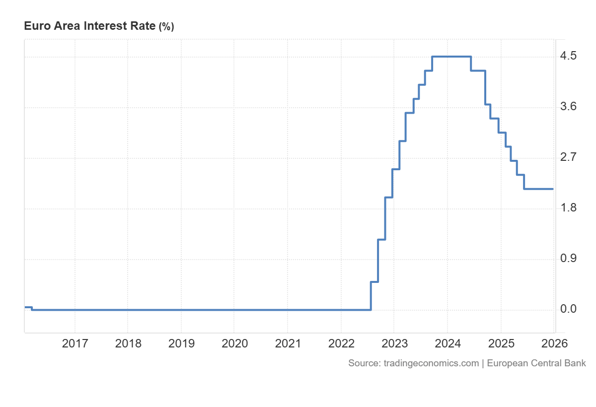 A stable interest rate maintains predictable financing conditions for companies and does not increase borrowing costs for businesses and households. This reduces the risk of a sharp slowdown in economic activity and supports equity valuations, especially in capital-intensive sectors. The DE 40 has a high share of export-oriented companies, so the dynamics of the euro play a key role. If the euro remains weak or weakens further after the decision, this supports the index through improved price competitiveness of German exporters.