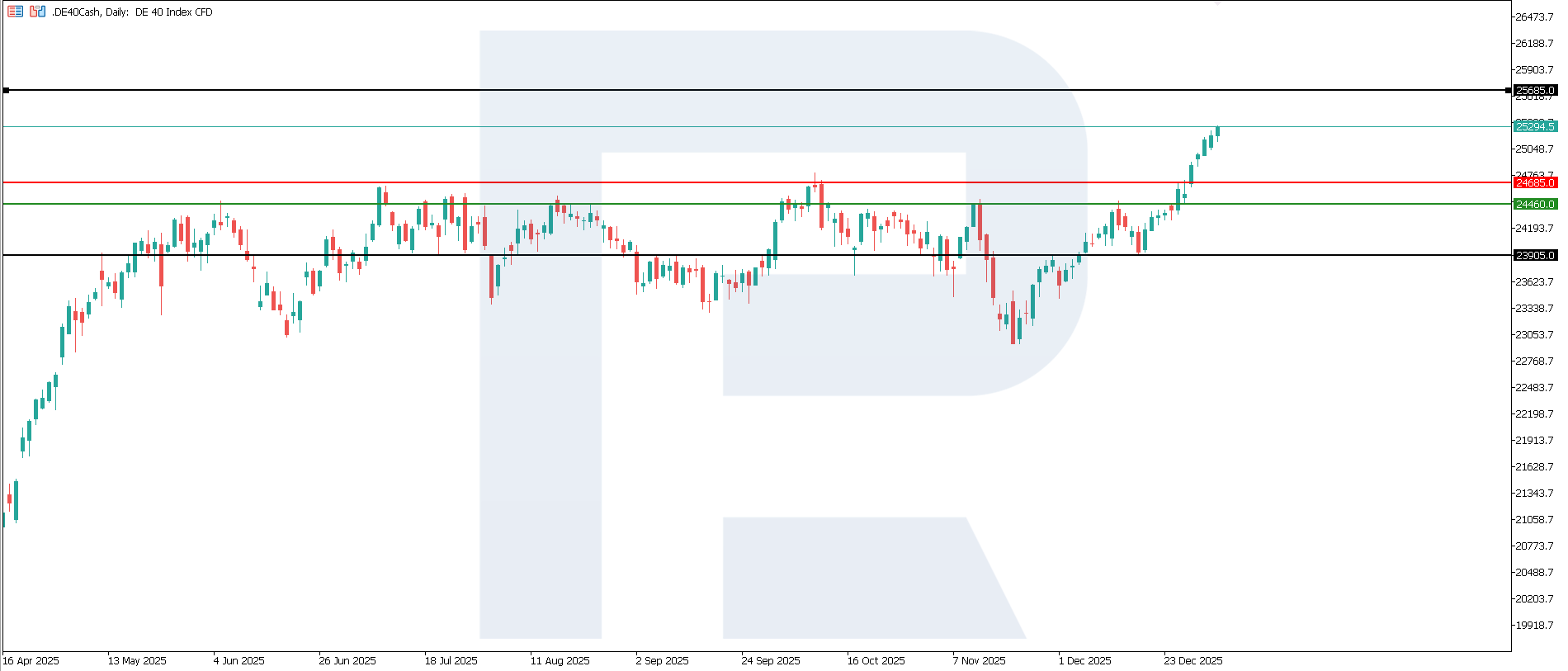 Germany’s industrial production: https://tradingeconomics.com/germany/industrial-production-momFor the DE 40 index, the key resistance level around 24,685.0 has been broken, with a new one yet to form. The support level is located near 24,460.0. A strong uptrend currently dominates the market, and prices continue to reach new all-time highs. The nearest upside target stands at 26,685.0.