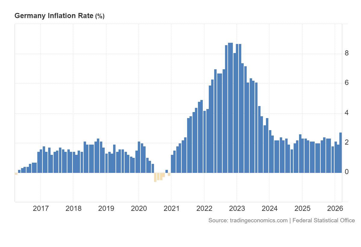 For the DE 40 index, this creates a mixed but rather cautious backdrop. On the one hand, the fact that the forecast has not been exceeded could support the market and limit pressure on equities. On the other hand, the 2.7% reading remains above the comfort level for the European Central Bank, which may reduce expectations of a more accommodative monetary policy in the coming months. If investors begin to price in a longer period of elevated interest rates, this may put pressure on company valuations, particularly those whose pricing strongly depends on future cash flows and access to financing.