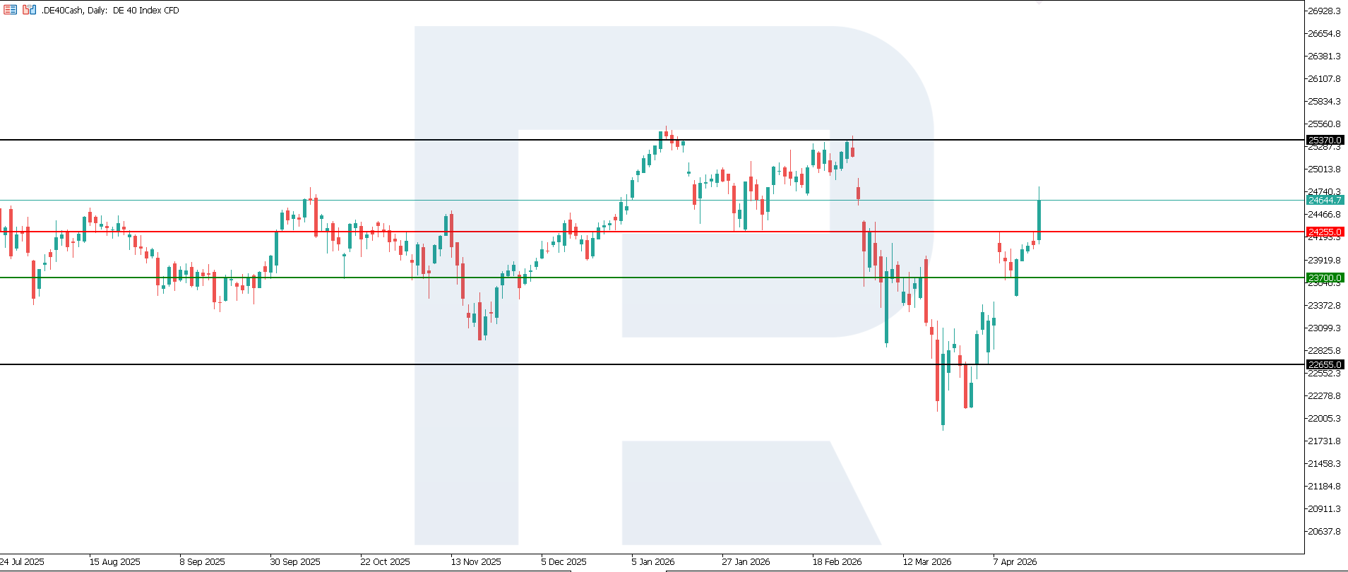 The uptrend in the DE 40 stock index continues and may lead to a new all-time high. The DE 40 forecast for today is positive.