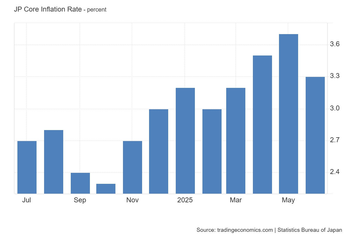 Japan’s core Consumer Price Index (core CPI) for July 2025 stood at 3.3% year-on-year, below the forecast of 3.4% and the previous reading of 3.7%. Lower inflation reduces pressure on the Bank of Japan to tighten monetary policy. This creates a positive environment across most sectors. Consumer companies stand to benefit the most, as the risk of falling real incomes lessens. Technology and export-oriented firms also benefit, since weak inflation increases the likelihood of continued accommodative monetary policy.