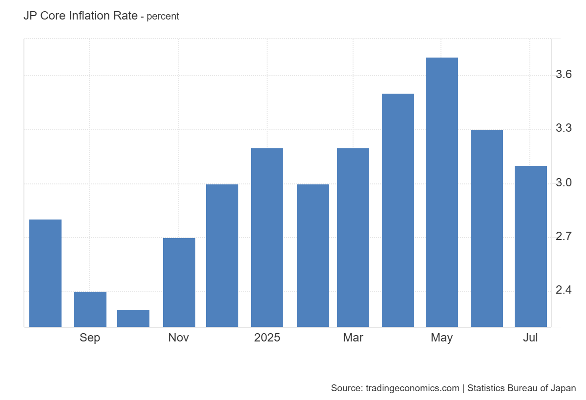 Japan’s national core CPI came in at 3.1% year-on-year, compared to a forecast of 3.0% and the previous reading of 3.3%. The indicator shows that inflation remains above the Bank of Japan’s 2.0% target, although it continues to ease from earlier levels. While risks of persistent inflation remain, the pressure is gradually declining.