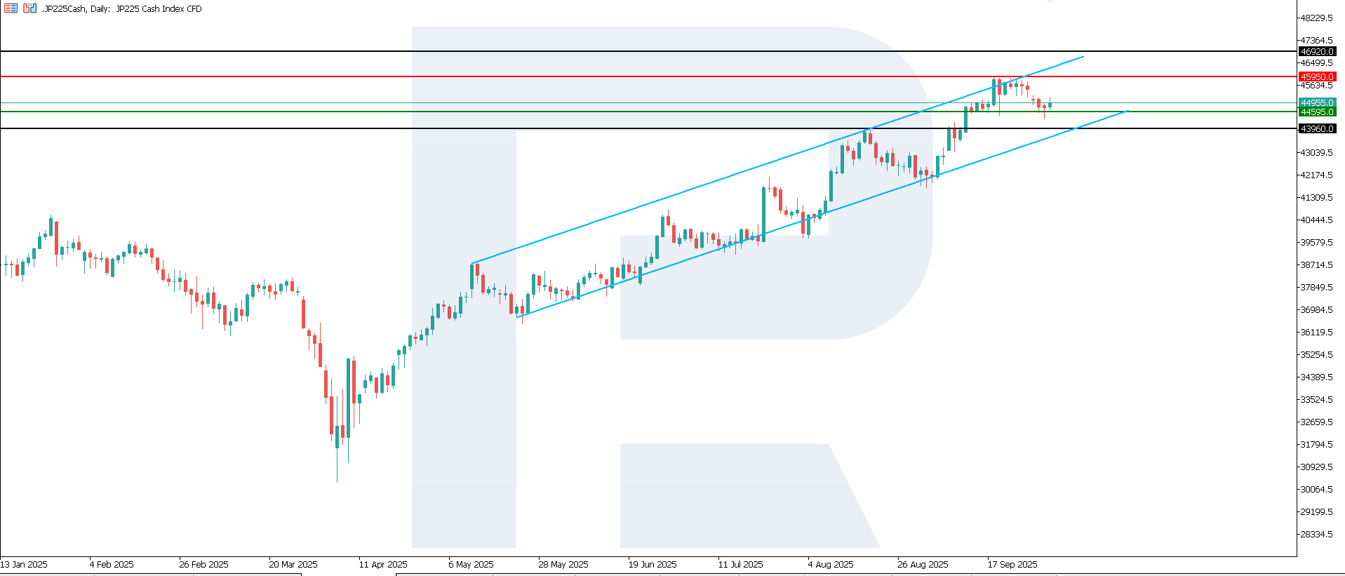 Export-oriented sectors such as autos, electronics, and machinery remain well-supported, benefitting from a weaker yen and lower rate risks, which strengthen margins and competitiveness. Key risks to the baseline scenario include yen fluctuations driven by shifts in Fed and BoJ expectations, as well as a potential rebound in inflation (e.g., due to energy prices). A renewed inflation spike could revive discussions of more decisive policy normalisation, pressuring equity valuations. The next upside target for the JP 225 stands at 46,920.0.