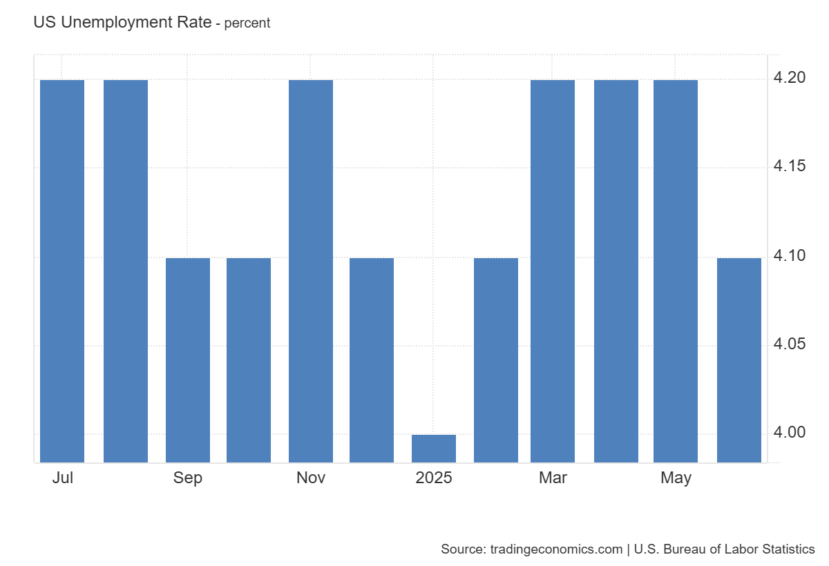 The unemployment rate is one of the key macro indicators of economic health. The figure came in below expectations (4.1% vs. 4.2%) and lower than the previous reading (4.3%), indicating a stronger labour market. Companies continue active hiring, while consumers feel more confident due to stable income.