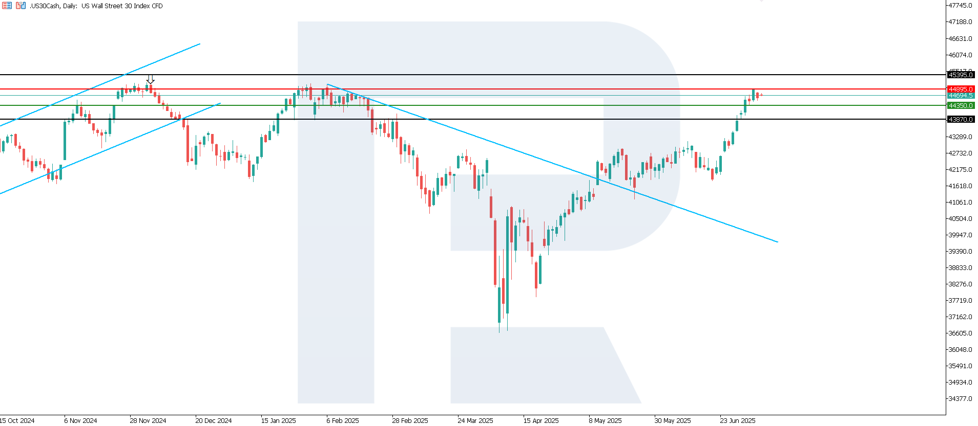 Scenarios for the US 30 index price forecast: