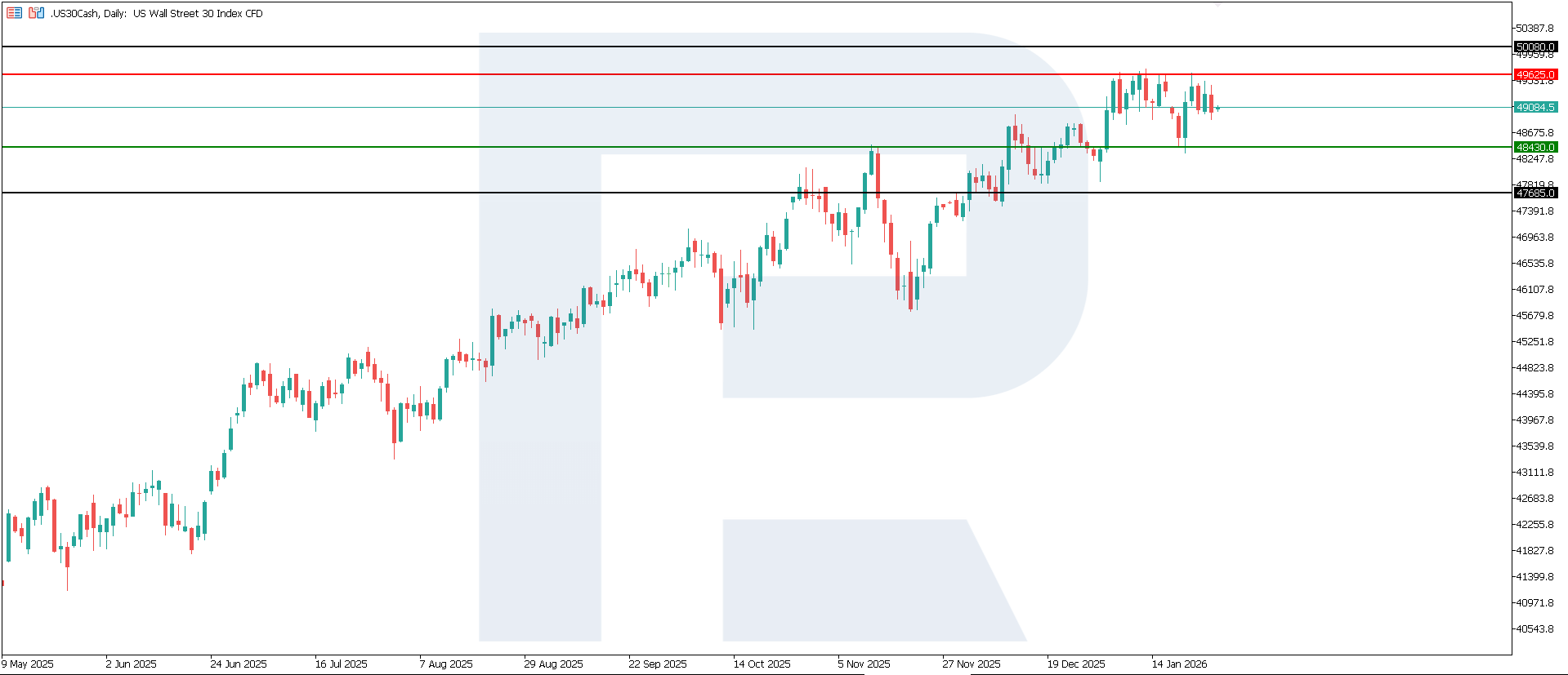 For the US 30 index, the impact is typically slightly more noticeable than for the broader market, because it has a higher share of large cyclical companies, including industrials and the financial sector, which are sensitive to economic conditions and interest rate levels. In this situation, the signal of manufacturing growth itself is moderately positive for the US 30, but due to the lack of surprise, the effect is likely to be limited and may quickly be offset by overall bond yield dynamics and expectations regarding Federal Reserve policy.