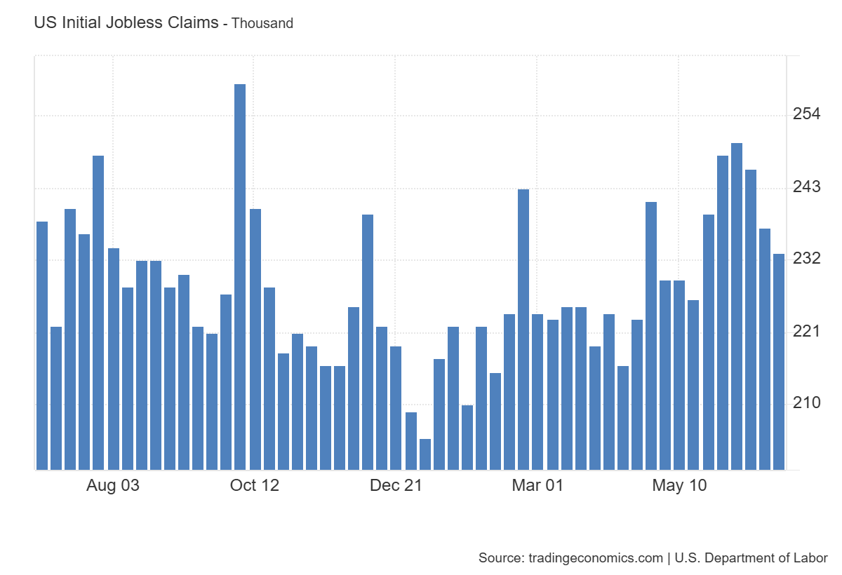 Lower-than-expected Initial Jobless Claims (233,000 vs. forecast 240,000 and previous 237,000) indicates a strengthening labour market and reduced pressure on employment. A strong labour market stimulates household spending on durable goods and entertainment, benefiting retail companies, restaurants, and consumer goods manufacturers.