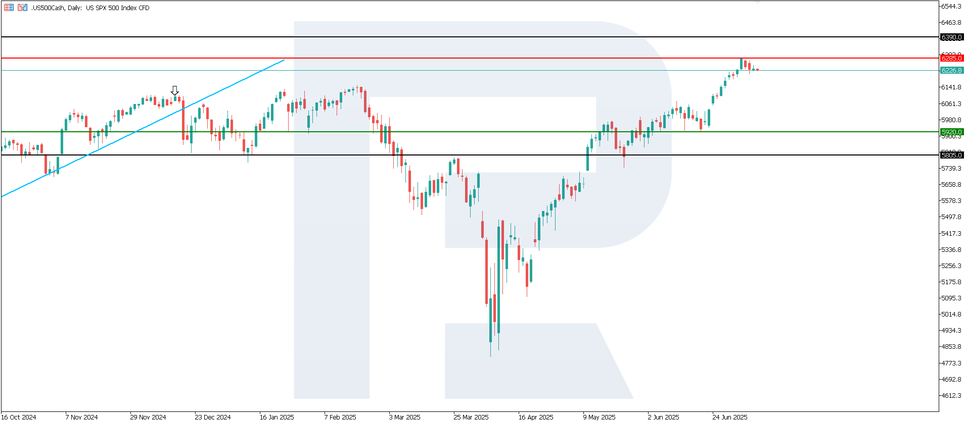 For the first time in history, the US 500 closed above the 6,200.0 mark – Q2 this year became the best quarter for the index since 2023. The forecast for US 500 today is positive.