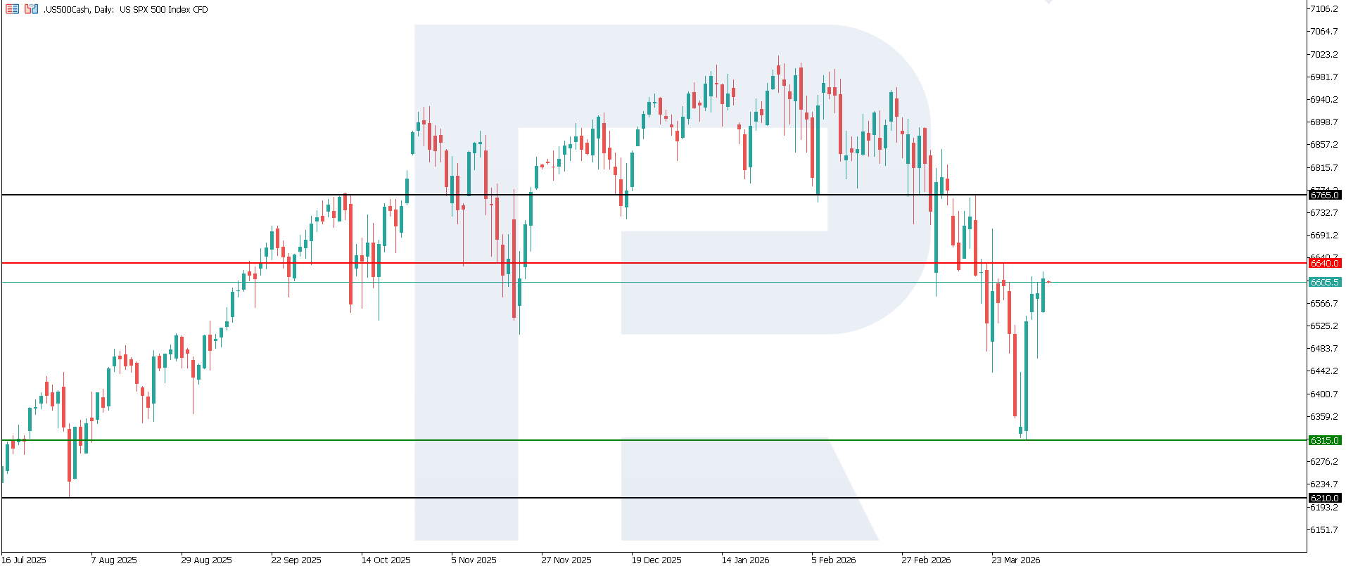 The US 500 index sees elevated volatility, with a sideways range likely to form. The US 500 forecast for today is negative.