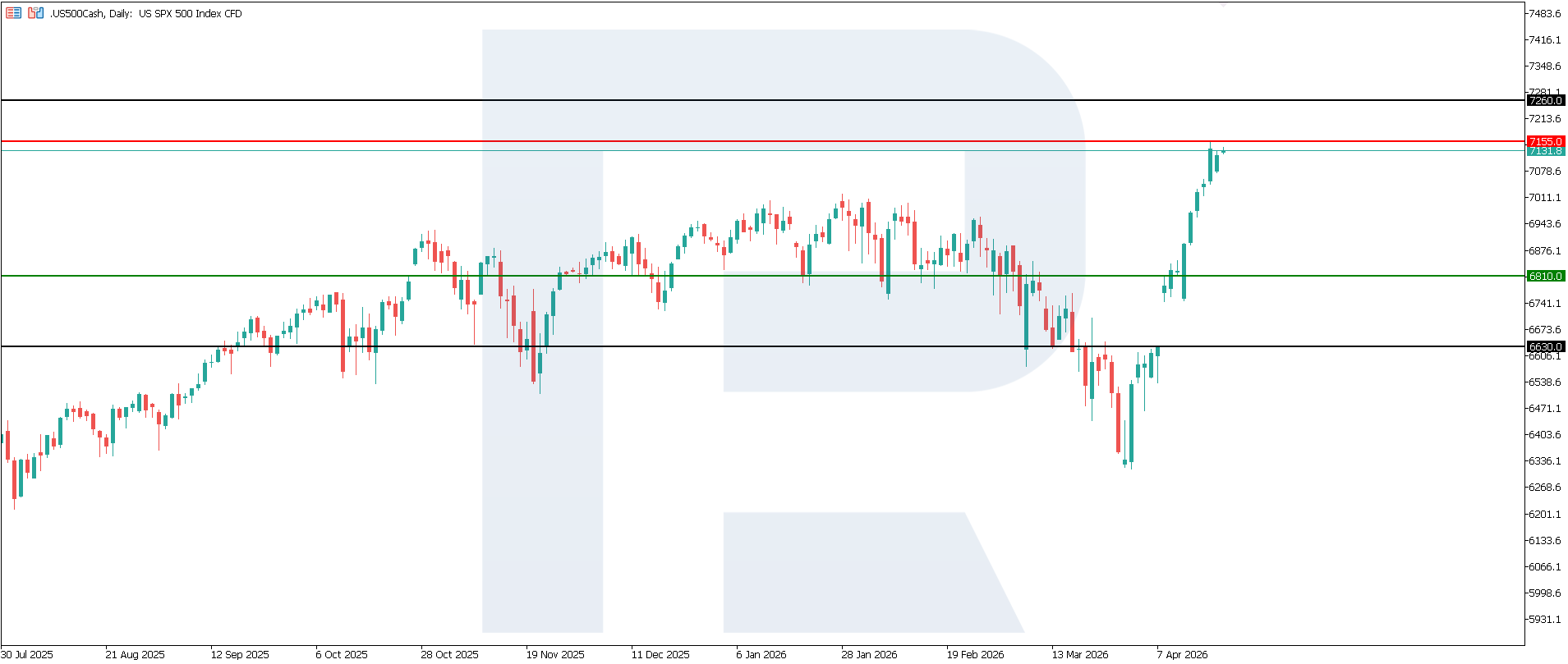 Overall, the release is a negative signal for the US 500 and the US stock market, as it points to weakening industrial activity and increases the risk of a broader economic slowdown. The main pressure may fall on cyclical sectors, including industrials, materials, energy, and parts of the financial sector. At the same time, technology and defensive companies could show more resilient performance if investors begin to factor in the probability of a more accommodative Federal Reserve stance. From a technical perspective, the US 500 index could rise towards 7,260.0.