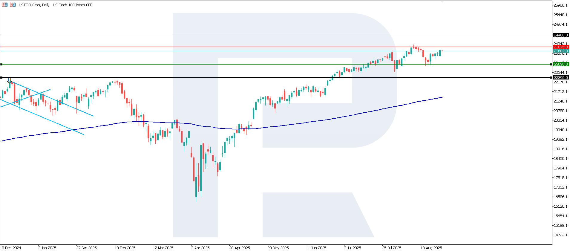 For the US Tech index, the impact could be mixed. On the one hand, GDP growth supports demand for digital services, semiconductors, and innovative technologies, benefiting tech firms. Cloud solutions, software, and e-commerce stand out as winners, driven by stronger consumption and business activity. On the other hand, robust macroeconomic data may raise concerns about possible rate hikes, which typically puts pressure on the high-tech sector, as it is sensitive to borrowing costs and future earnings discounting.