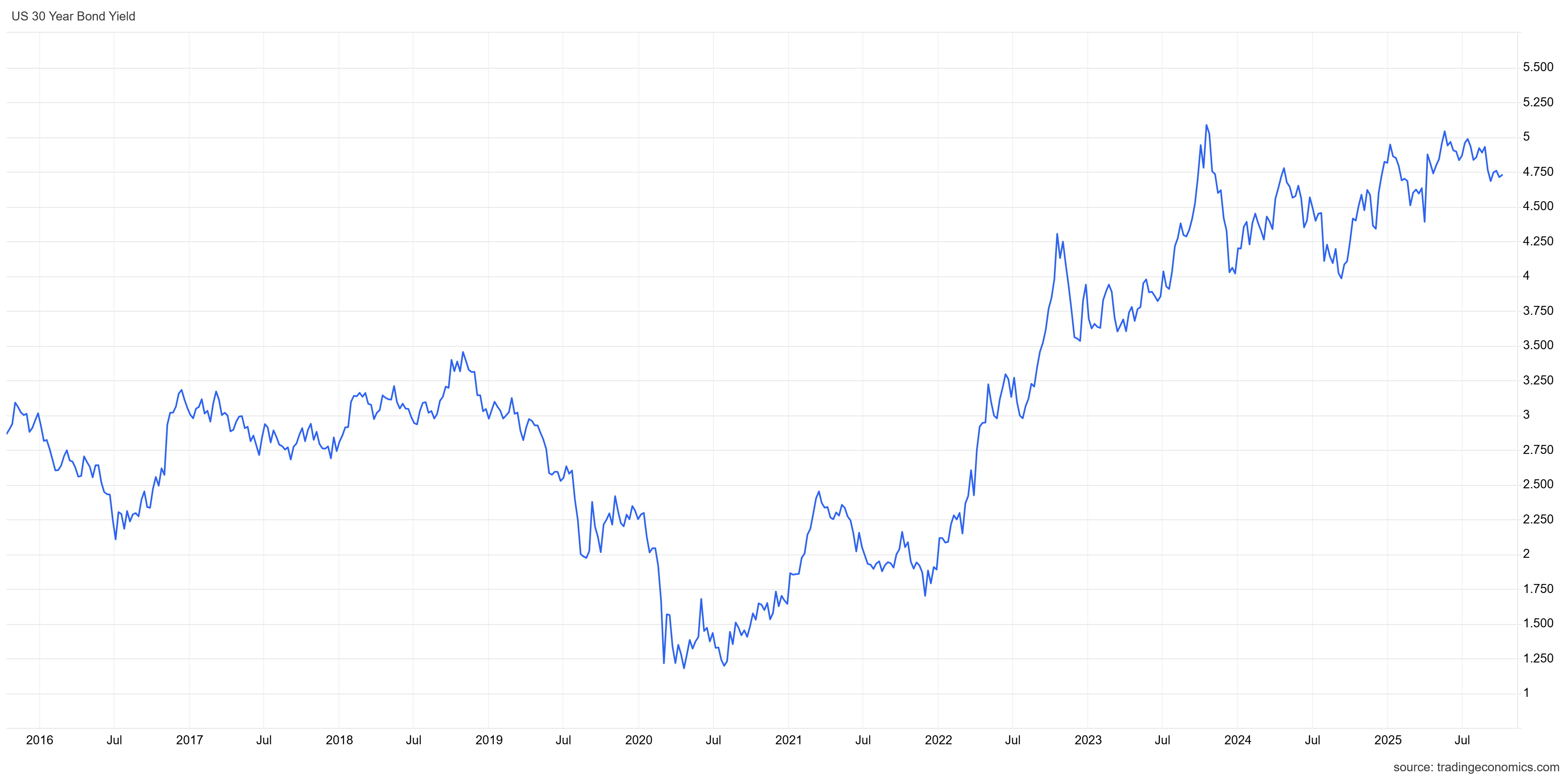 US 30-year bond yield: https://tradingeconomics.com/united-states/30-year-bond-yieldThis means the cost of capital is rising, while the relative attractiveness of equities versus bonds is declining, especially amid uncertainty about future monetary policy. Higher yields may also signal reduced demand for government debt, adding to financial market volatility. Overall, this creates a moderately negative backdrop for the US stock market, as higher yields increase the appeal of risk-free assets and reduce the present valuation of companies’ future profits.